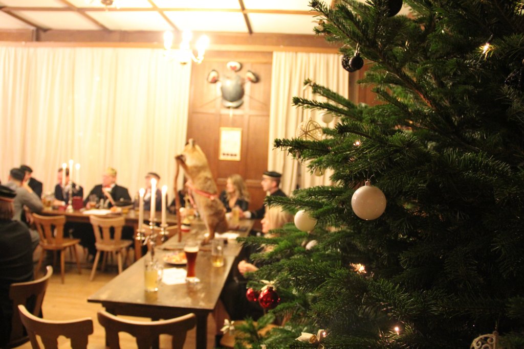 Natürlich war unser Kneipsaal auch dieses Jahr, dem Anlass entsprechend, festlich geschmückt. Neben der Tischdekoration mit Tannenzweigen, Mandarinen und Walnüssen trug allen voran unser Weihnachtsbaum, der gemäß den Farben unserer lieben Stauffia festlich geschmückt war, zur weihnachtlichen Stimmung bei.