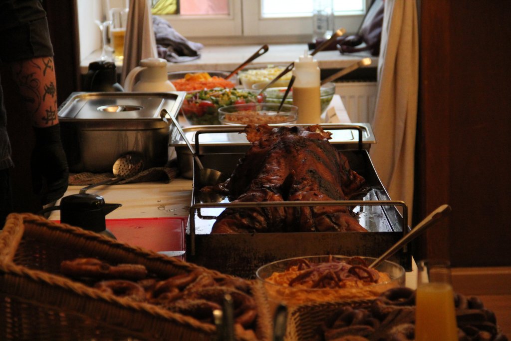 Am letzten Tag unseres Stiftungsfests erwartete uns für den Ausklang eine langgelebte Tradition: das Weißwurstfrühstück auf dem schönen Stauffenhaus. Gemeinsam versammelten wir uns, um über das verlebte Stiftungsfest zu plaudern, feinste Brühwürste nebst Brezeln zu verspeisen und das eine oder andere Bier zu genießen.