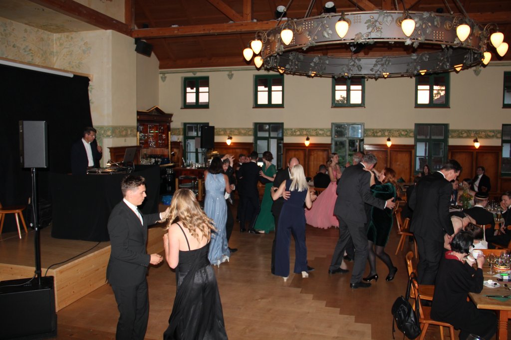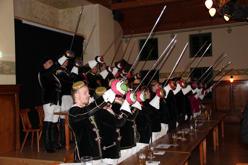 Die Gesellschaft bei Tisch war heiterster Stimmung und blickte voll Stolz und Freude auf die vergangenen Tage. Wir erhoben unsere Bierkrüge auf das gelungene Stiftungsfest und genossen die gemütliche Atmosphäre, die von Freude und Zusammengehörigkeit geprägt war.