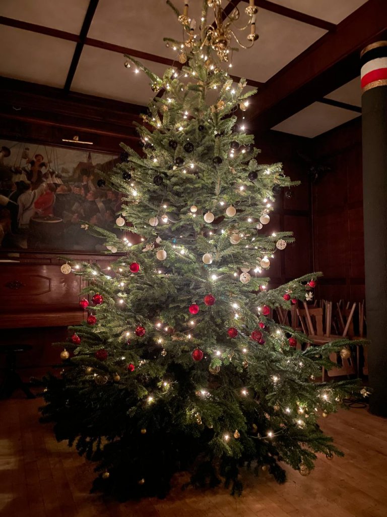 Alljährlich wird auf unserem schönen Stauffenhaus die Adventszeit mit einer besinnlichen Kneipe versüßt. Es ist in den letzten Jahren fast schon Tradition geworden, die Kneipe gemeinsam mit Vertreterinnen einer akademischen Damenverbindung Bavaria Aurea München zu veranstalten. Die Aufgabenteilung war simpel: wir Stauffen richteten einen geschmückten Kneipsaal mit Nordmann-Tanne her – traditionell die größte verfügbare Tanne, die auf der Theresienwiese verkauft wird, in der U5 nach Hause transportiert – und die güldnen Bayrinnen sorgten für eine adäquate weihnachtliche Verpflegung.