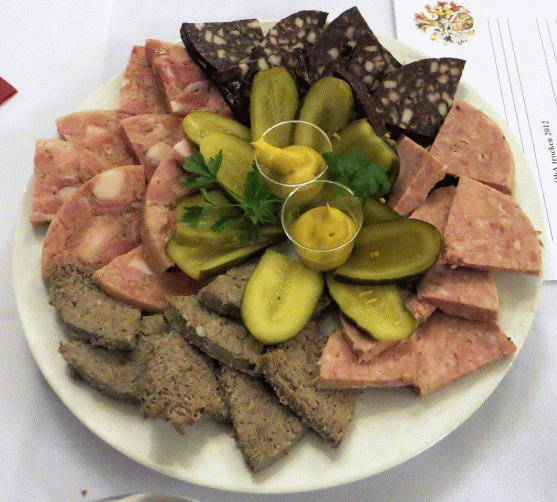 Zum Abschluss des offiziellen Teils des Abends wurden nun noch Pfälzer Spezialitäten, wie z.B. Schwartenmagen, Blutwurst und Leberwurst mit Brot gereicht. Und so komme ich zur zweiten und letzten großen Frage des Abends: War es das? Durften wir nur einmal kurz probieren und kommen nun nie wieder in den Genuss dieses köstlichen Pfälzer Weines? Anders als die erste große Frage des Abends, welche wahrscheinlich ein ewiges Rätsel bleiben wird, hat sich diese Frage schnell und zur Zufriedenheit aller aufgelöst. Der übrig gebliebene Wein stand für den Rest des Abends zum Verkauf und somit zur Verköstigung bereit.