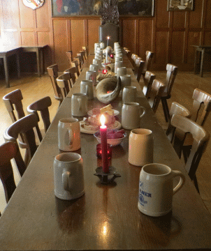 Am 24. Mai durften die Stauffen zur ersten Met Verkostung laden! Eine gut geschmückte Tafel vermochte die Gäste zu beeindrucken – Trinkhörner durften hier natürlich nicht fehlen.